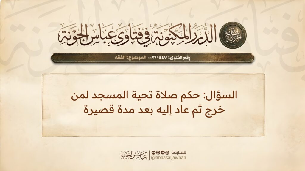 حكم صلاة تحية المسجد لمن خرج ثم عاد إليه بعد مدة قصيرة